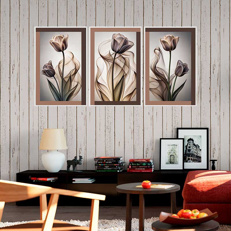 Transforme sua sala de estar em uma obra de arte com nosso Quadro Floral AbstratoTulipas - Edição Luxo Texturizado! mais do que um simples quadro, este trio é uma peça de arte que vai elevar o nível da sua decoração e impressionar seus convidados!