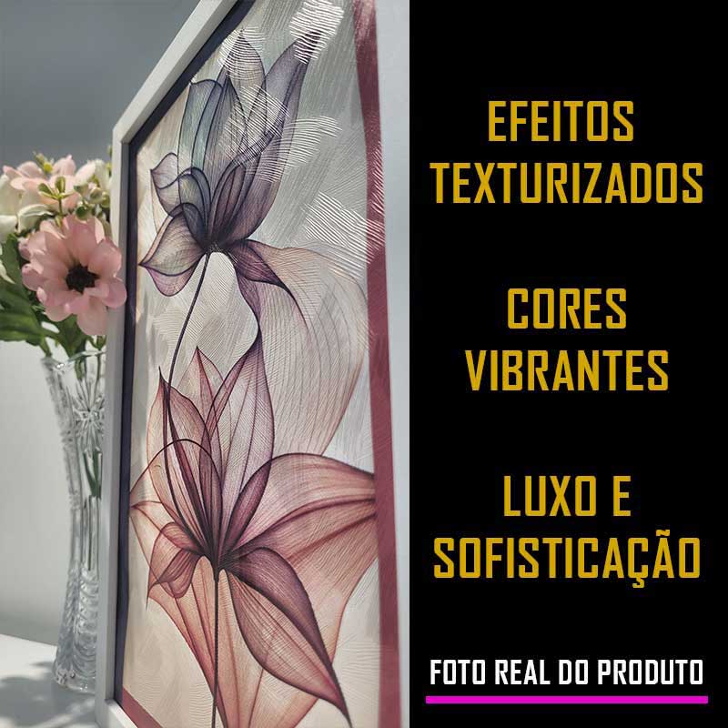 Transforme sua sala de estar em uma obra de arte com nosso Quadro floral Vibrações - Edição Luxo Texturizado! mais do que um simples quadro, este trio é uma peça de arte que vai elevar o nível da sua decoração e impressionar seus convidados!